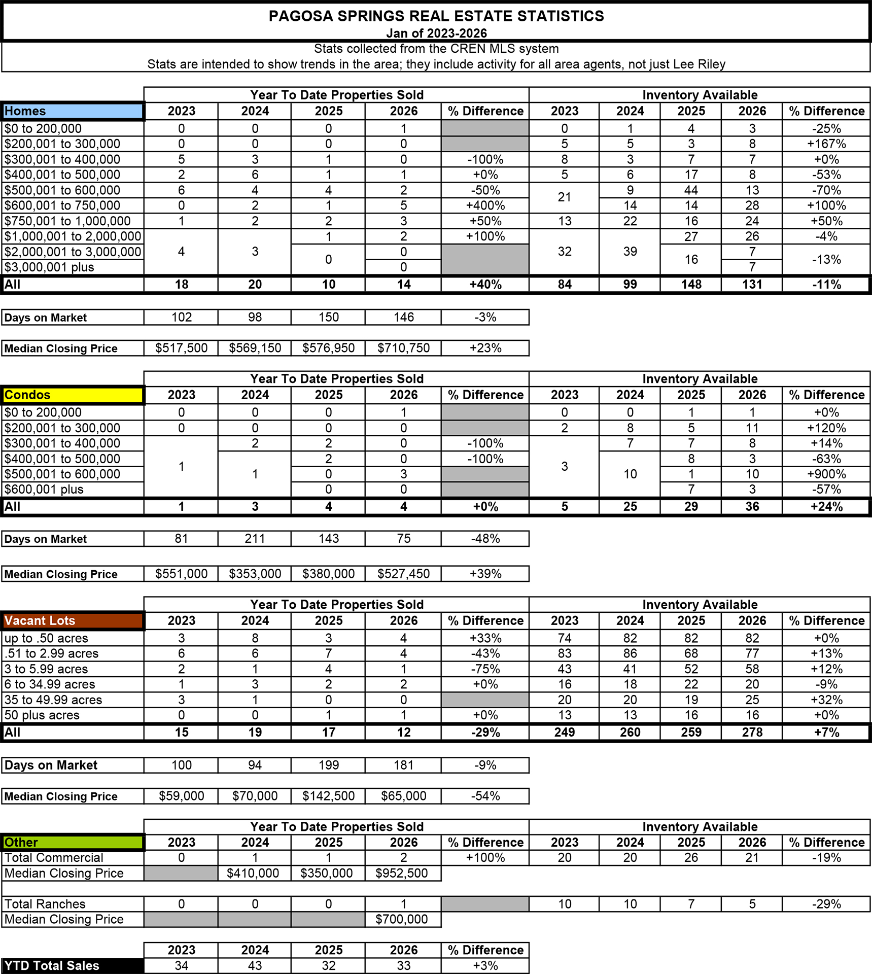 Home » Pagosa Springs Real Estate Statistics (Jan Of 2023-2026) Pagosa Springs Real Estate Statistics (Jan Of 2023-2026)